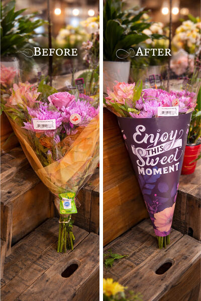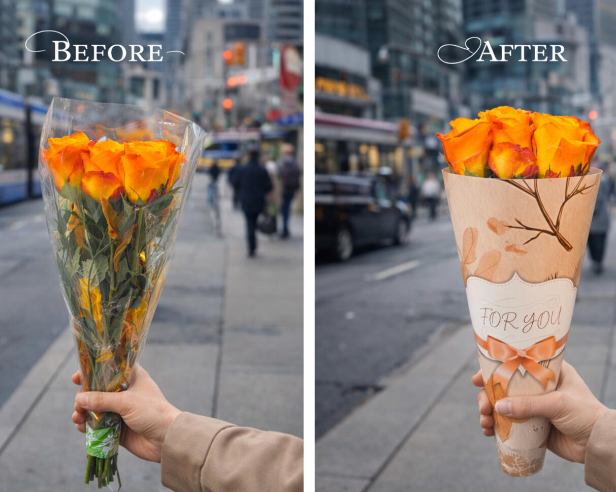With Yuda Wraps, every bouquet receives a professional, clean, and modern eco-friendly finish that is instantly gift-ready. Designed for florists, grocery stores, and local markets, our wraps reduce unnecessary plastic while maintaining strength, beauty, and structure; helping transform simple flowers into premium, sustainable gifts that increase customer appeal and sales.