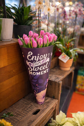 Yuda Wraps are designed for speed and simplicity. With double-sided adhesive already applied, the wrap is easily folded into a cone shape in seconds. In less than one minute, staff or customers can place the flowers inside and create a clean, secure, and gift-ready bouquet .